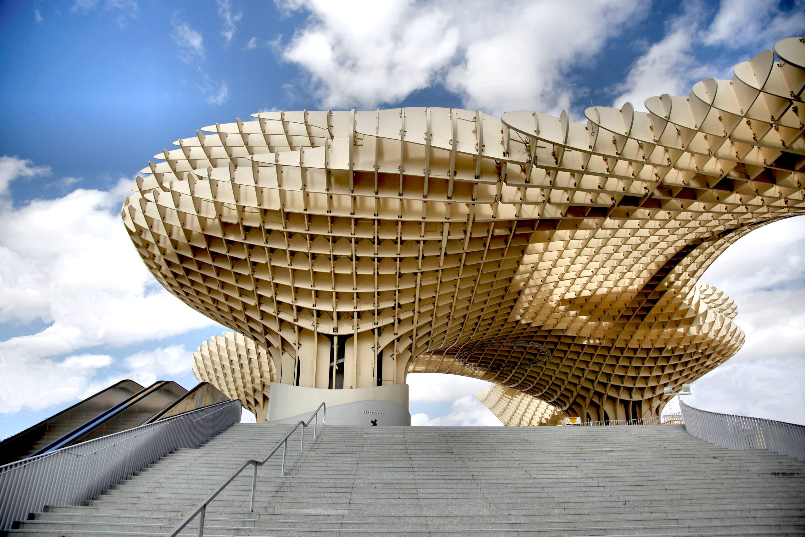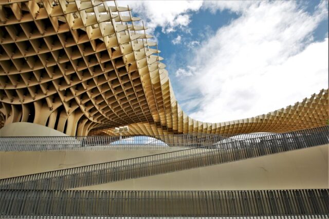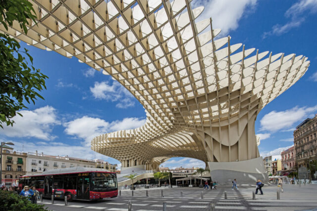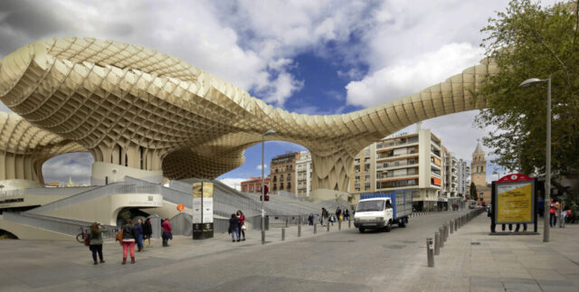 Sevilla: Dit stukje architectuur is van hout vervaardigd en ontworpen door de Oostenrijker Jürgen Mayer en is destijds bedacht en gebouwd om het stadsplein Plaza de la Encarnación verfraaien. Gedurende 130 jaar heeft hier een overdekte markt gestaan dat uiteindelijk is vervangen door dit bouwwerk. Het is in in 2011 opgeleverd. Behalve dat het plein dat door de constructie wordt overdekt ligt bevat sols introduceert het architectenbureau een, boven de stad uitgetilde, bovenop de parasols ook een slingerend wandelpad dat naar een restaurant voert. In de kelder is een museum ingericht waarin de Romeinse en Moorse archeologische vondsten te bezichtigen zijn.